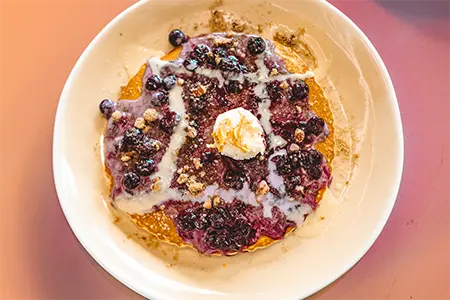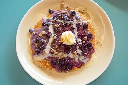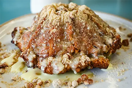 Sweet Cream Batter, Blueberry Compote, Pecan Streusel, Cream Cheese Anglaise & Candied Lemon
