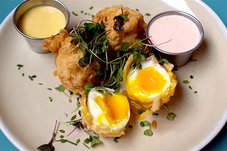 Soft Boiled Eggs, Battered & Flash Fried, Served with