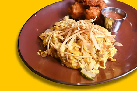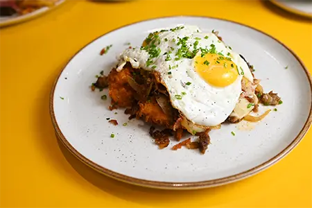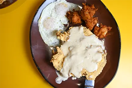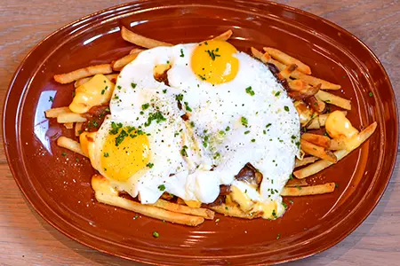 House-made Brown Gravy, French Fries, Cheese Curds, Two Eggs Sunny Side Up & Chives