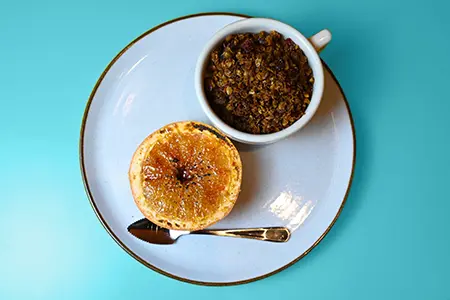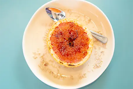 Limited Availability! Served Chilled with House-made Soft Granola & Vanilla Greek Yogurt. Served with a Brûléed Grapefruit