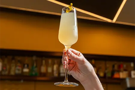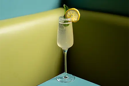 Sparkling on Tap, Garden Club Gin, St Germain, Lemon, Honey, Lavender, Mint