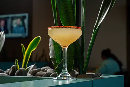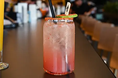 Ghost Tequila, Cointreau, Lime, Mango, Pineapple Juice, Chamoy, Tajin